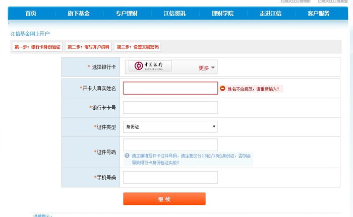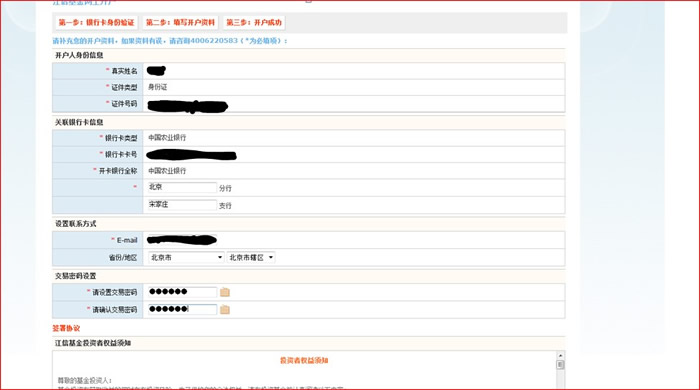 2,、填写开户人的银行卡信息,证件号码,以及银行柜台预留的手机号码。